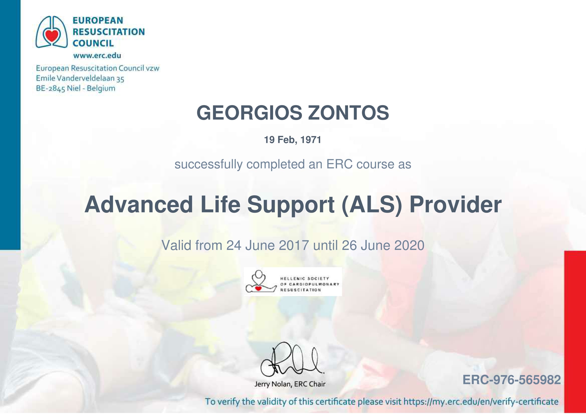 The safety of each patient is always the main priority. Dr. Zontos is officially recognized as an Advanced Life Support Provider, and his medical assistants have also been trained and qualified as Basic Life Support providers.