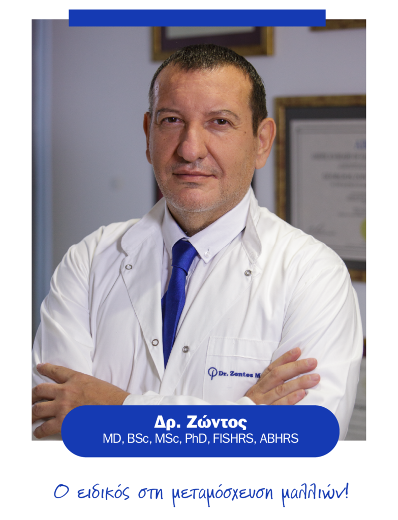 Μεταμόσχευση μαλλιών με απόλυτα φυσικό και πυκνό αποτέλεσμα. Με πολυετή εμπειρία ο Δρ. Γεώργιος Ζώντος και η
